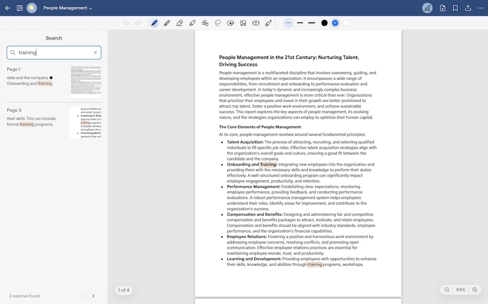 Locate any content in your PDF documents with PDF search on all devices. Users can now search preloaded text in their documents, making it easy to locate relevant content in PDFs.