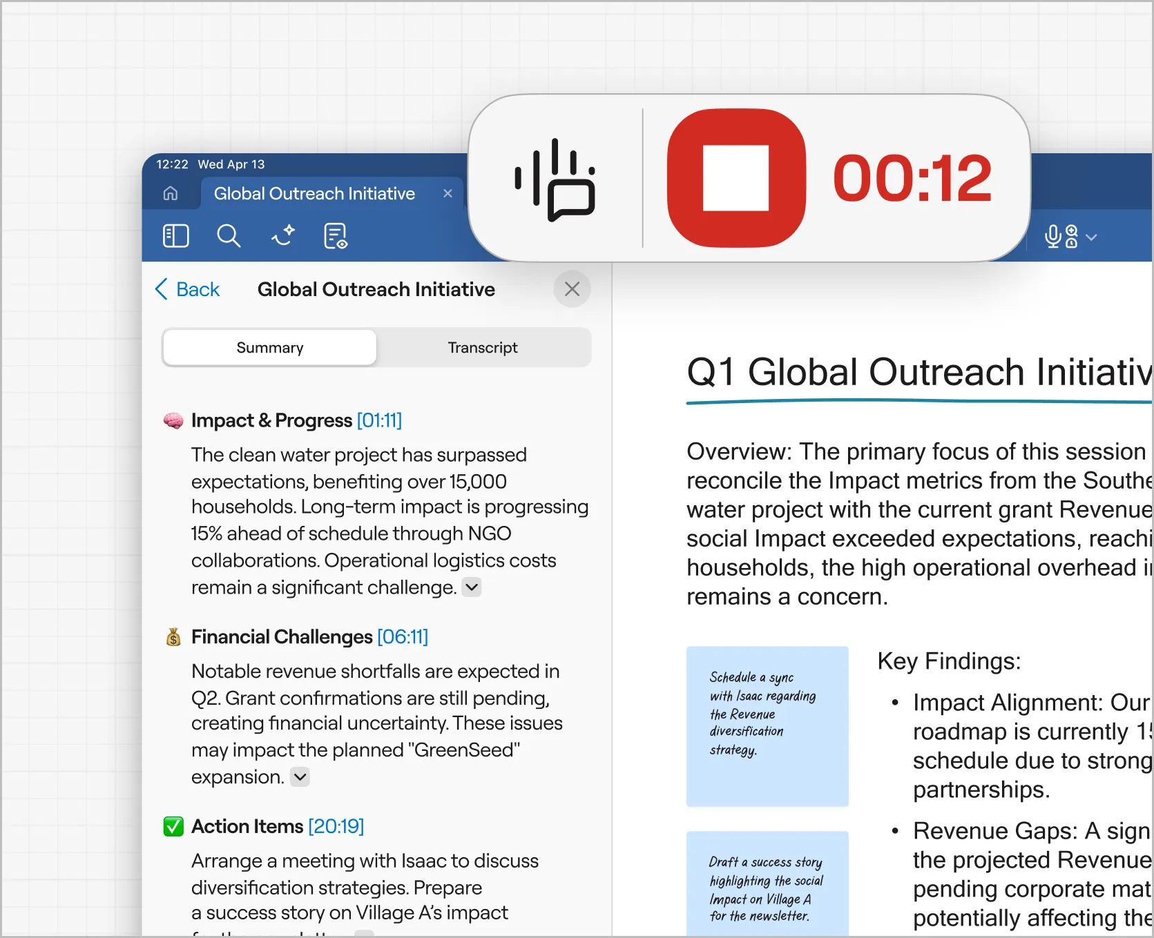 Record public meetings, annotate grant proposals and policy documents, highlight key feedback, and search transcripts later to surface critical details quickly while preserving a clear record of discussions.