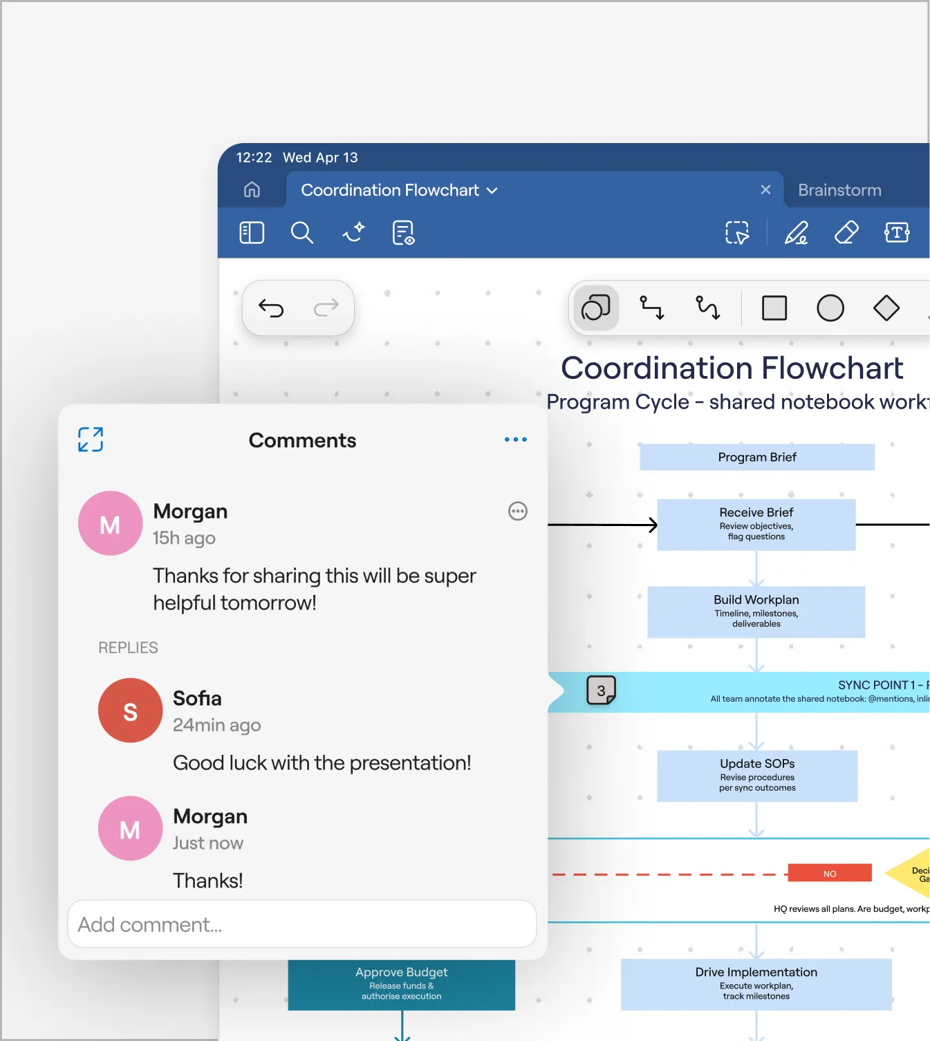 Visually map initiatives, funding streams, timelines, and responsibilities to clarify complex program structures.