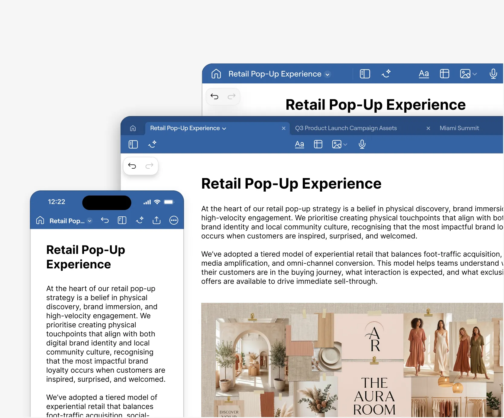 Capture multimodal moodboards and ideas on the go then share concepts without friction. With multi-device sync, teams and clients can keep campaigns moving wherever inspiration strikes.