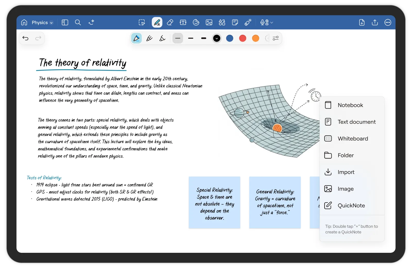Write equations, mind maps, and diagrams on a blank canvas. Edit your ink after you’ve noted it down.