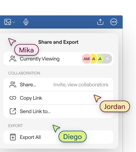 Record meetings, dictate ideas, or capture quick thoughts directly into your document. Reduce manual note-taking and keep spoken context linked to the written record.
