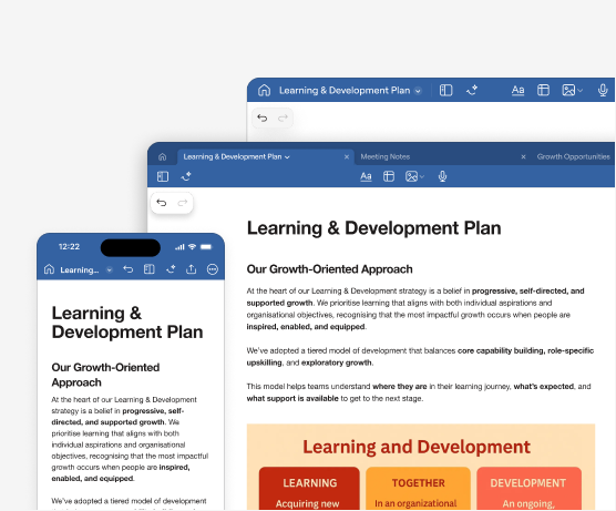 Work confidently across iPad, Mac, Windows, and web. Enterprise-ready security and permissions help teams collaborate at scale while meeting governance needs.
