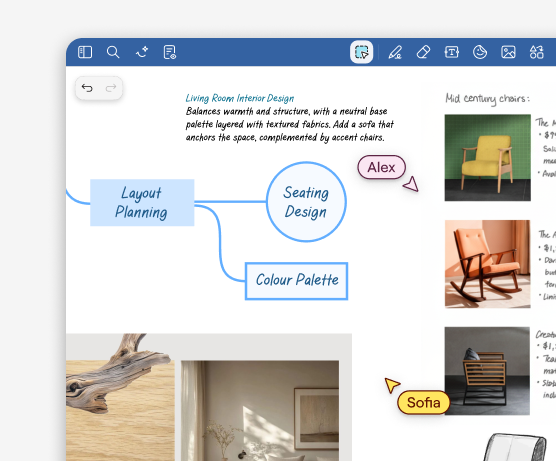 Map strategies, structure plans, and visually work through challenges together. Whether you're in remote workshops, hybrid meetings, or cross-functional sessions, updates sync instantly across participants and devices so everyone stays aligned.